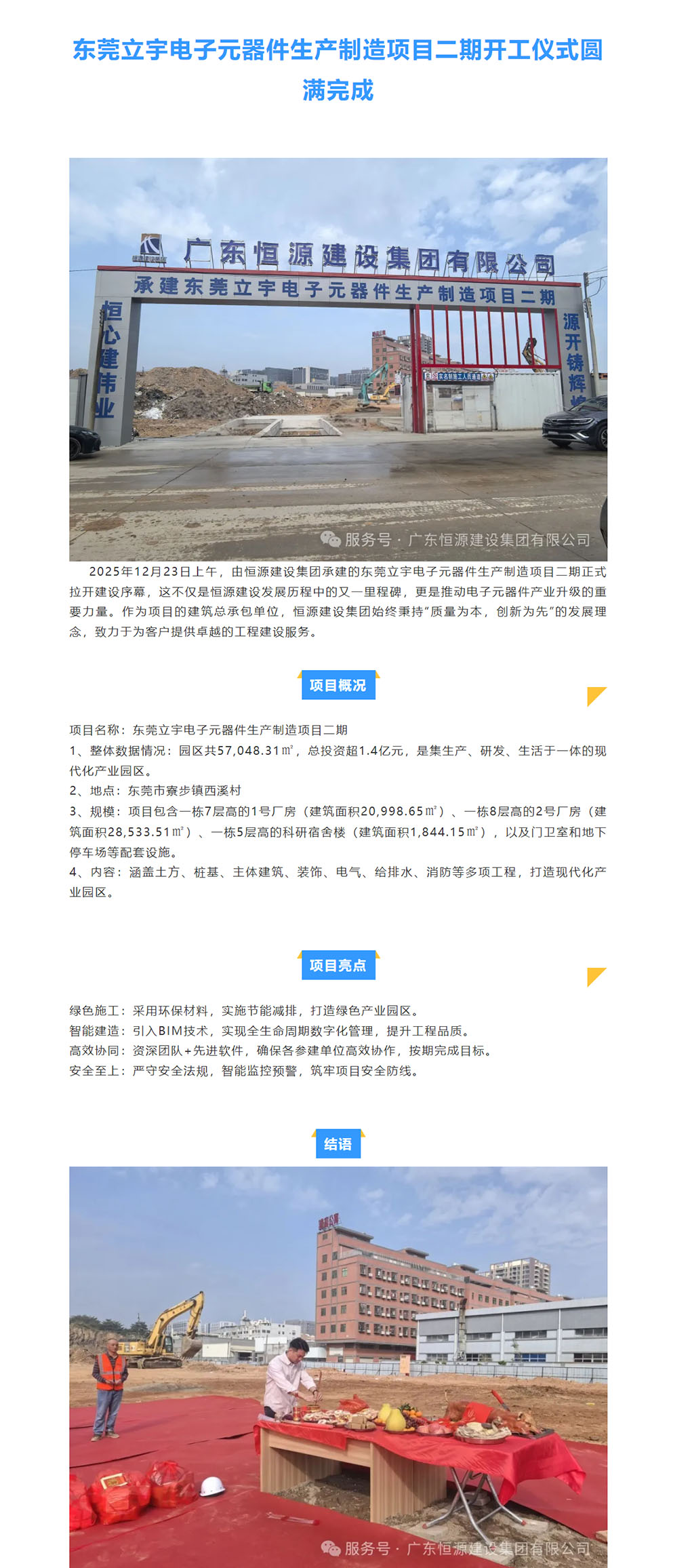 【项目动态】东莞立宇电子元器件生产制造项目二期开工仪式圆满完成